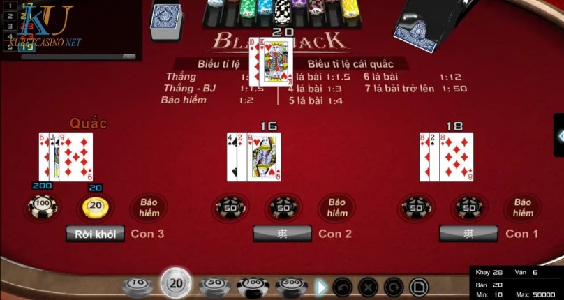 Blackjack cổ điển: Người chơi đặt mục tiêu đạt được giá trị ván bài gần nhất với 21 mà không vượt quá.